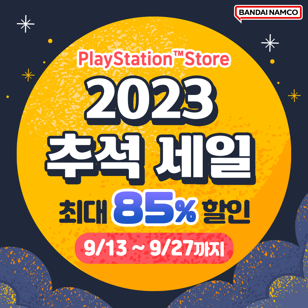 반다이남코 엔터테인먼트 코리아(대표 제랄드 누난)는 PlayStation™Store에서 게임 타이틀을 기간 한정으로 저렴하게 판매하는 ‘2023 추석 세일’을 9월 13일(수)부터 9월 27일(수)까지 진행한다고 발표했다.