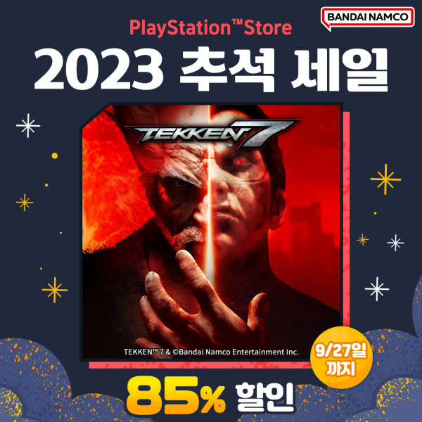 PlayStation™Store에서 '철권 7'(한국어판)을 정가에서 85% 할인된 가격에 만나볼 수 있다.