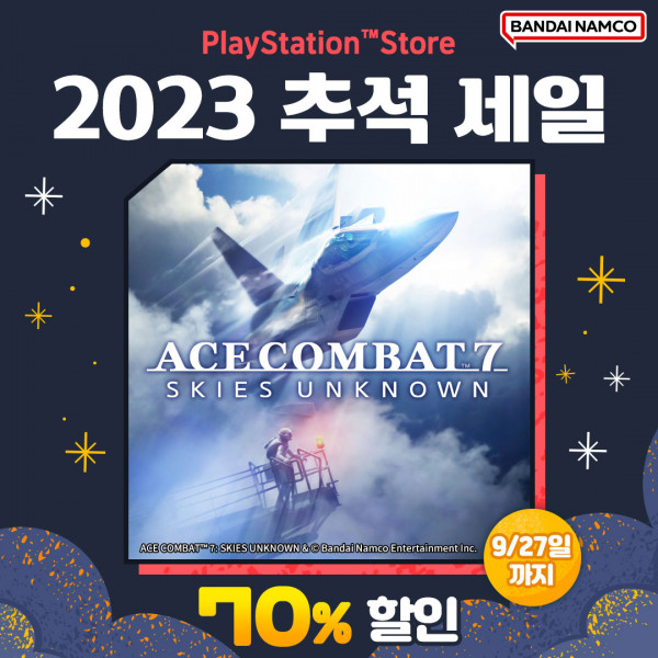 현재, '에이스 컴뱃 7 스카이즈 언노운'(한국어판)을 70% 할인된 가격에 판매 중이다.