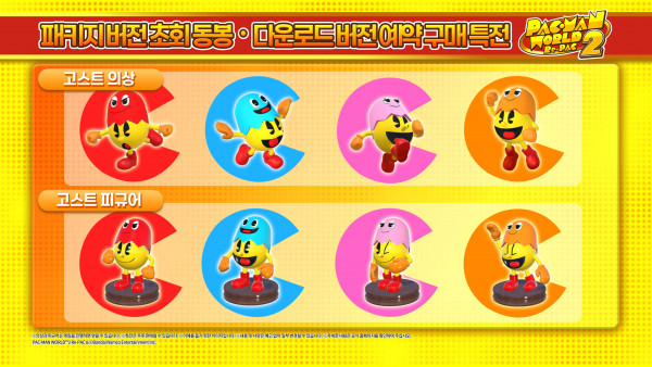 ‘팩맨 월드 2 리팩’(한국어판)의 패키지 버전 초회 동봉 및 다운로드 버전 예약 구매 특전으로 '조기 해방 고스트 의상 4종', '조기 해방 고스트 의상의 피규어 4종'을 제공한다.