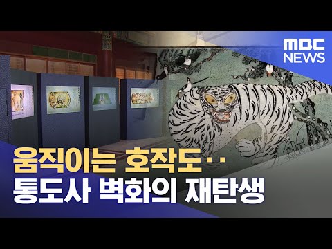 이 그림을 비롯해 통도사 곳곳에 다양한 벽화들을 디지털 벽화로 재탄생시킨 특별한 전시회가 열리고 있습니다.