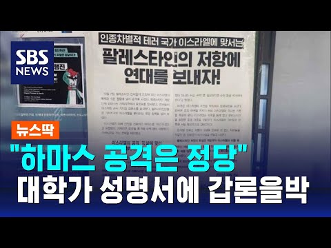 이스라엘과 팔레스타인 하마스 간에 무력 충돌이 이어지는 가운데, 국내 대학가에 팔레스타인을 지지하는 성명서가 내걸려서 갑론을박이 이어지고 있습니다.
