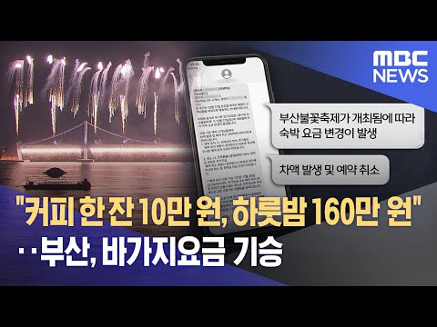부산불꽃축제가 오는 17일에 열립니다. 코로나19로 3년 만에 열리는 만큼 100만 명이 넘는 인파가 부산을 찾을 걸로 예상되는데요,  벌써부터 커피 한 잔에 10만 원, 하룻밤 숙박료에 160만 원 넘게 부르는 곳도 나왔습니다.