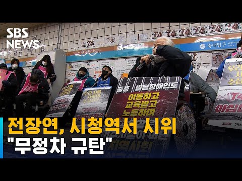 전국장애인차별철폐연대가 서울 지하철 1호선 용산~노량진역 구간에서 최근 서울시의 무정차 조치를 규탄하며 지하철 시위를 진행하고 있습니다. 전장연은 오늘(19일) 아침 8시쯤 1호선 시청역에 모여 지하철 승하차를 반복하는 방식으로 열차 운행을 지연시키고 있습니다. 이번 시위 장소는 전장연이 서울교통공사와 서울시의 무정차 조치에 대응하기 위해 정확한 이동 경로를 밝히지 않으면서 아침 7시 50분에야 공지됐습니다.