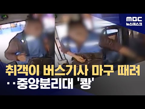 술에 취해 버스 기사 마구 때려‥중앙분리대 '쾅'