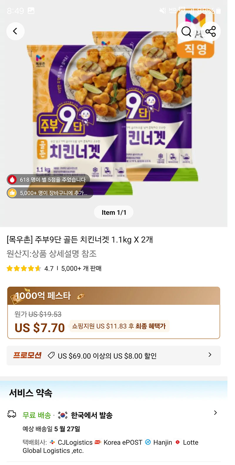 오우...가성비... 97 HIKARU 기사 7 2629 0 2024.05.22 08:53 1.1kg x2가 11,000원이면.....ㅋ ㅋ)에어프라이어로 돌려서 밥반찬이나..해야겠당.... 0 Author 4 3 Lv.97 97 HIKARU 최고관리자 640,535 (90%) 등록된 서명이 없습니다.