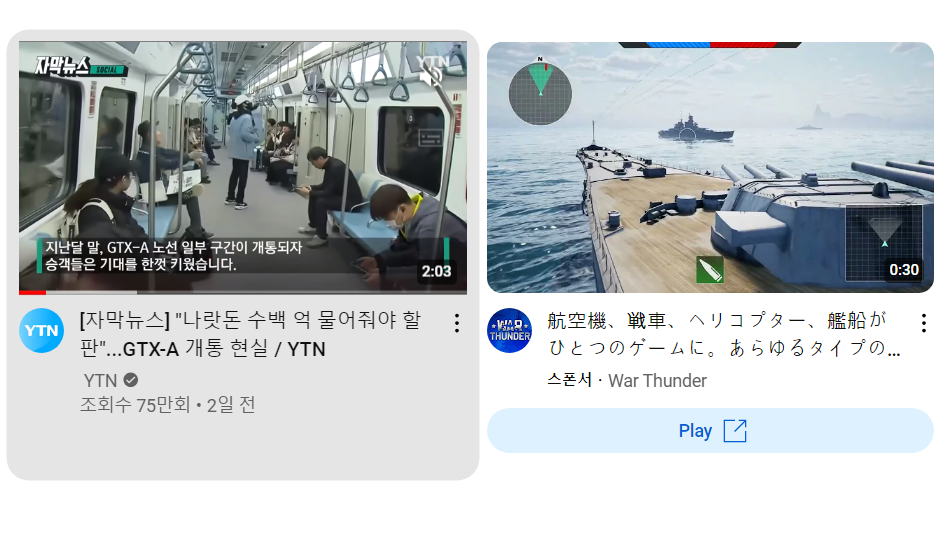 이제 커서를 제목쪽에만 가져다 놔도.. 미리보기 영상 돌아감..ㅡ..ㅡ..