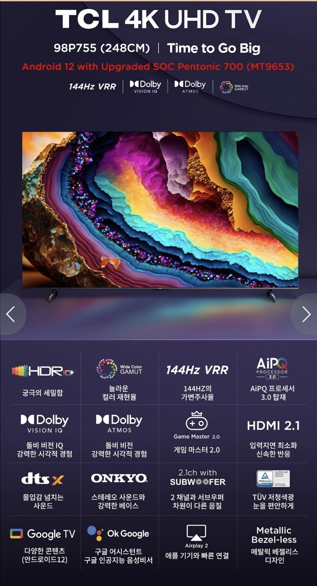 98인치에 144hz 주사율 지원. 게임 모드 지원...