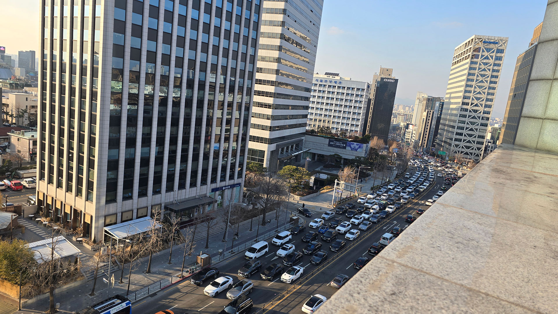 그러네요... 건물이 약간씩 휘어져 보임.. 그것도 한방향이 아니라  S 자로 ㅡ..ㅡ..