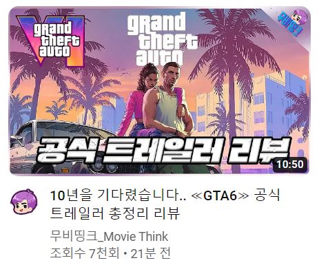 가끔 영화 리뷰 뜨면 보는 채널인데.......GTA 리뷰를???.... 별~!..ㅡ..ㅡ