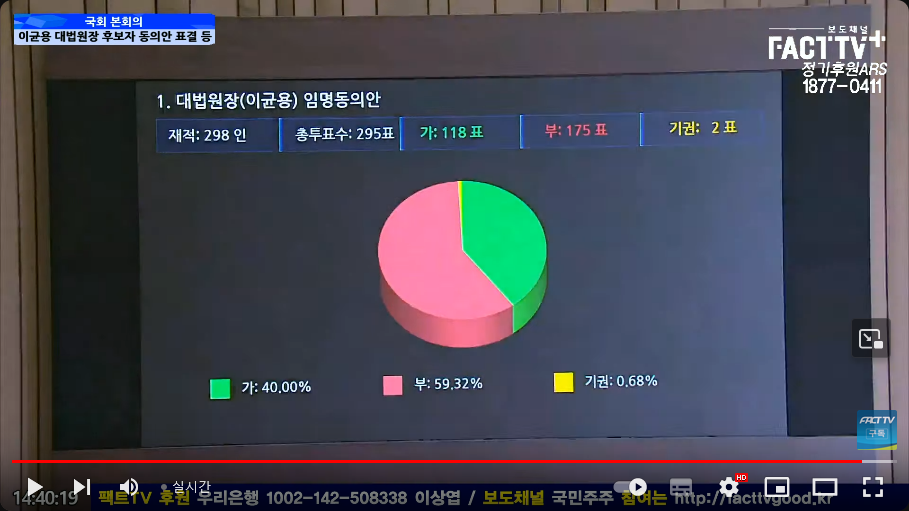 대법원장 후보 이균용은 부결됐네요. 97 HIKARU 담소 1 2193 0 2023.10.06 14:45 나...뉴라이트입니다!라고 대놓고 밝히던 후보였는데...흠...가결이 118표...기권 2표라.... 0 Author 4 3 Lv.97 97 HIKARU 최고관리자 640,555 (90.2%) 등록된 서명이 없습니다.