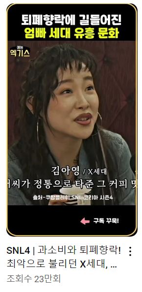 예전 엑스세대 끌고 와서... 지들은 우리보더 더했으면서 mz 욕한다고 조리돌림하고 노는듯 ㅡ..ㅡa (실제 댓글들이 그럼..)