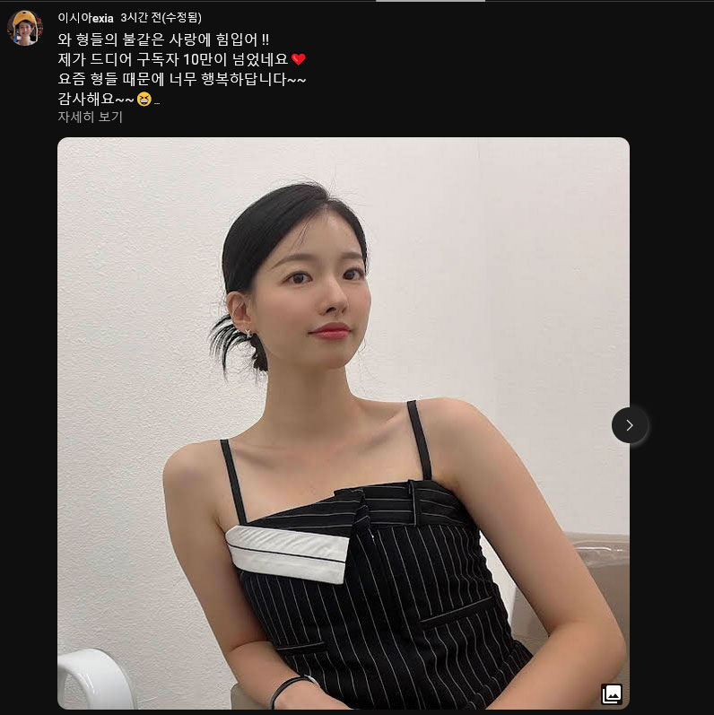 와...10만 넘었네요... 97 HIKARU 담소 3 2186 0 2023.07.18 13:27 역시 유튜브는 물 들어올 때 노 저어야 됨.....금방 10만이네요. 스타 고인물이 저렇게나 많다니..ㅋ ㅋ)최근에 올린 영상들은 조회수도 25만~50만 사이가 나오네요.스타로 떡상하는 여자 연예인 유튜버..ㅋ ㅋ);; 0 Author 4 3 Lv.97 97 HIKARU 최고관리자 640,615 (90.7%) 등록된 서명이 없습니다.