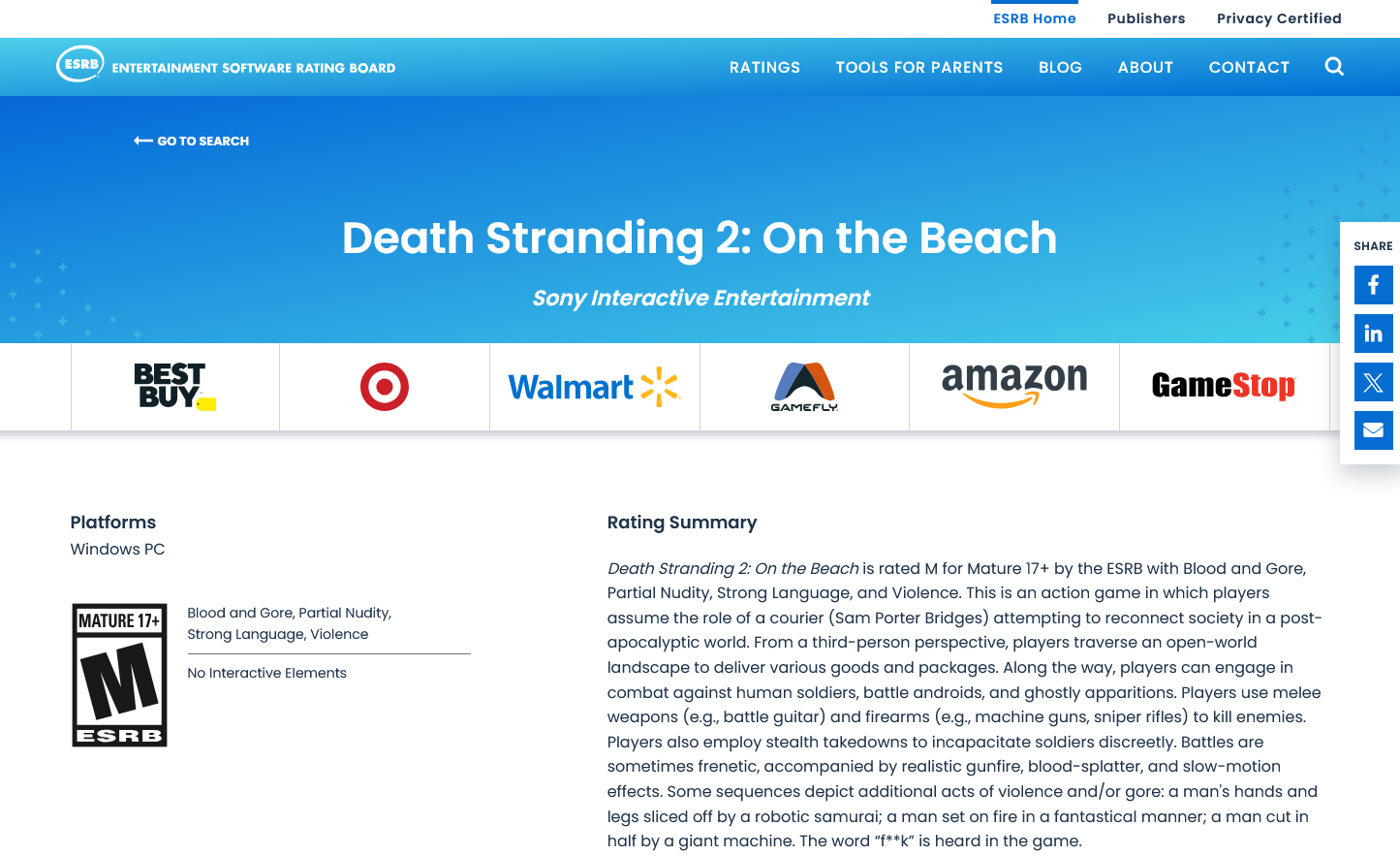 ESRB에 Death Stranding 2: On the Beach가 올라왔네요.