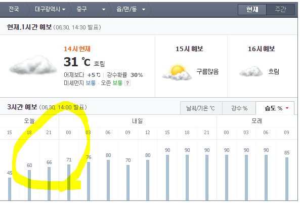 참고로 하단은 오늘 대구 습도....... 기온은 높아도 습도가 낮음....ㅡ..ㅡ..