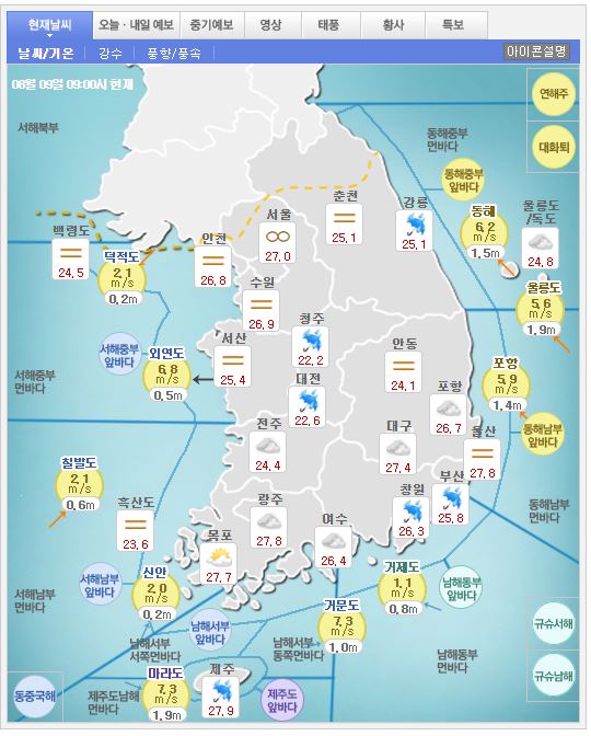 지금의 날씨 M Max 정보 2 5977 0 2017.08.09 09:52 기온은 낮게 나오는데 중국발 습기가 계속 유입되서 찝찝함.. 오후에 습도가 좀 빠진다는데 지켜봐야 할듯 ㅡ..ㅡ..그나저나 기후변화 시작되고 특이한게.. 서쪽 바닷가 지방은 꾸준히... 일정온도+습도 유지하며 덥고... 원래 여름이면 더웠던 내륙지방은.. 겁나 덥거나 겁나 시원하거나 복불복 퍼레이드 군요 ㅡ..ㅡ.. 낮에 청주,대전 22도라??????? 헐~! [09시 기준] [위성사진] [일기도] 0 Author 3 3 Lv.99 M Max 노땅클럽 968,705 (100%) 시간 참 빠르다~! ㅡ..ㅡy~!!