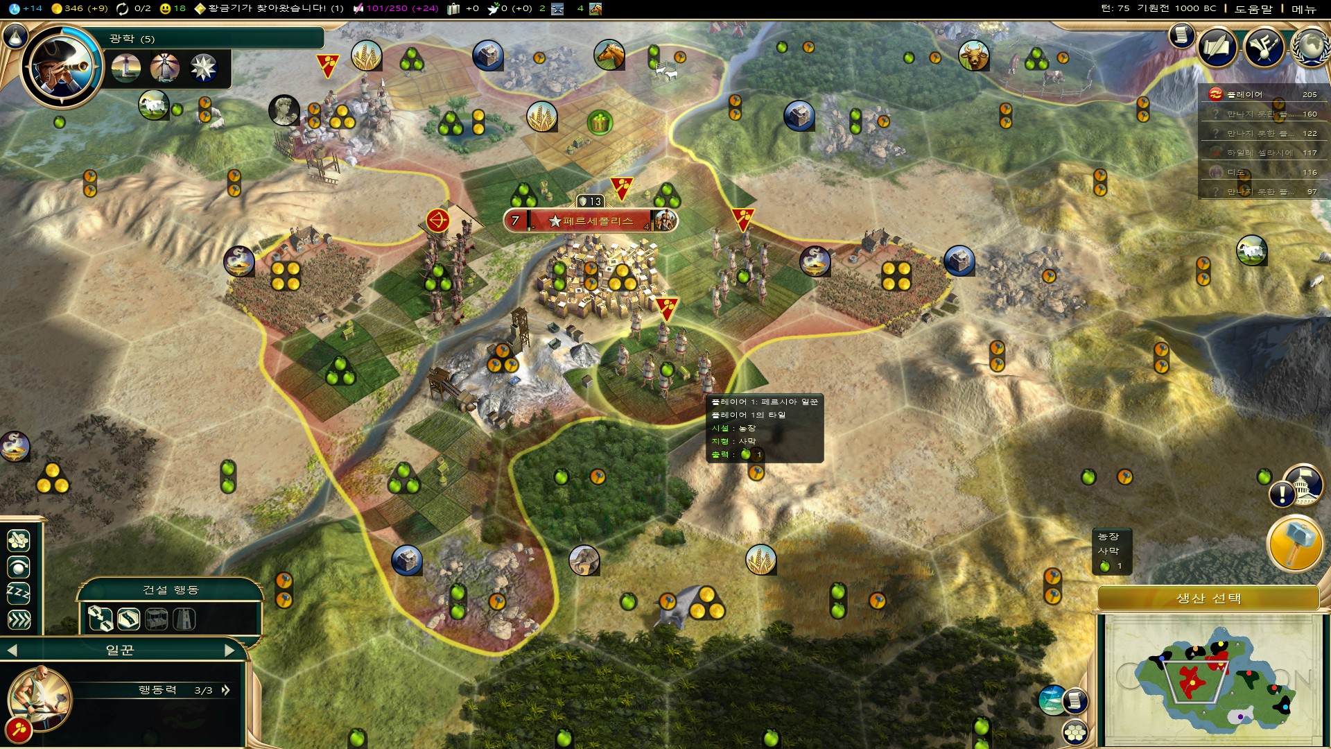 개척자러쉬(?)로 문명과 도시국가 길목에 터잡아, 길막하면서 플레이 했더니, 얘네들이 성장을 못하네요..ㅋ
