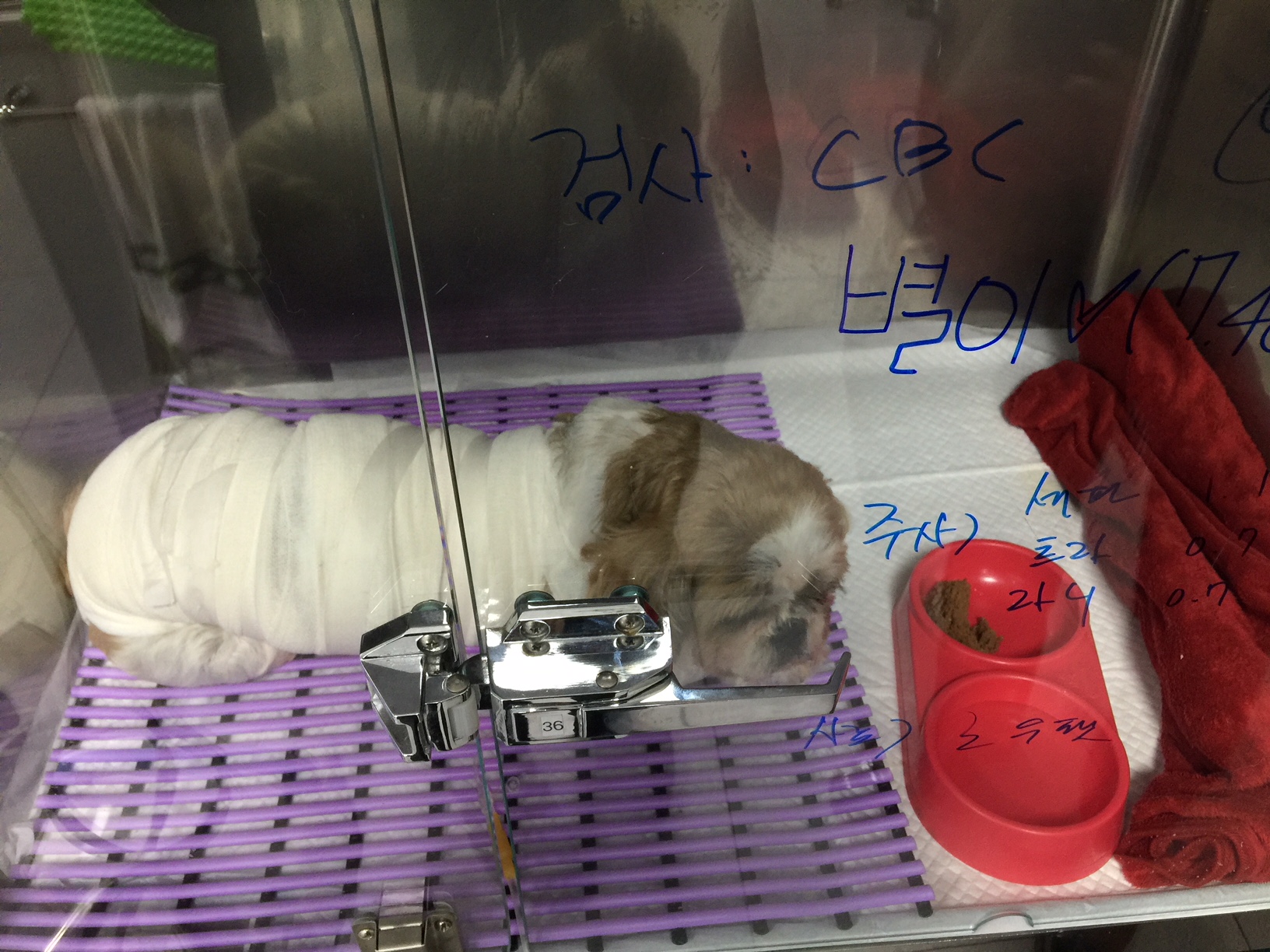 살살 달래서 케이지 문 닫고 바로 나왔음..
