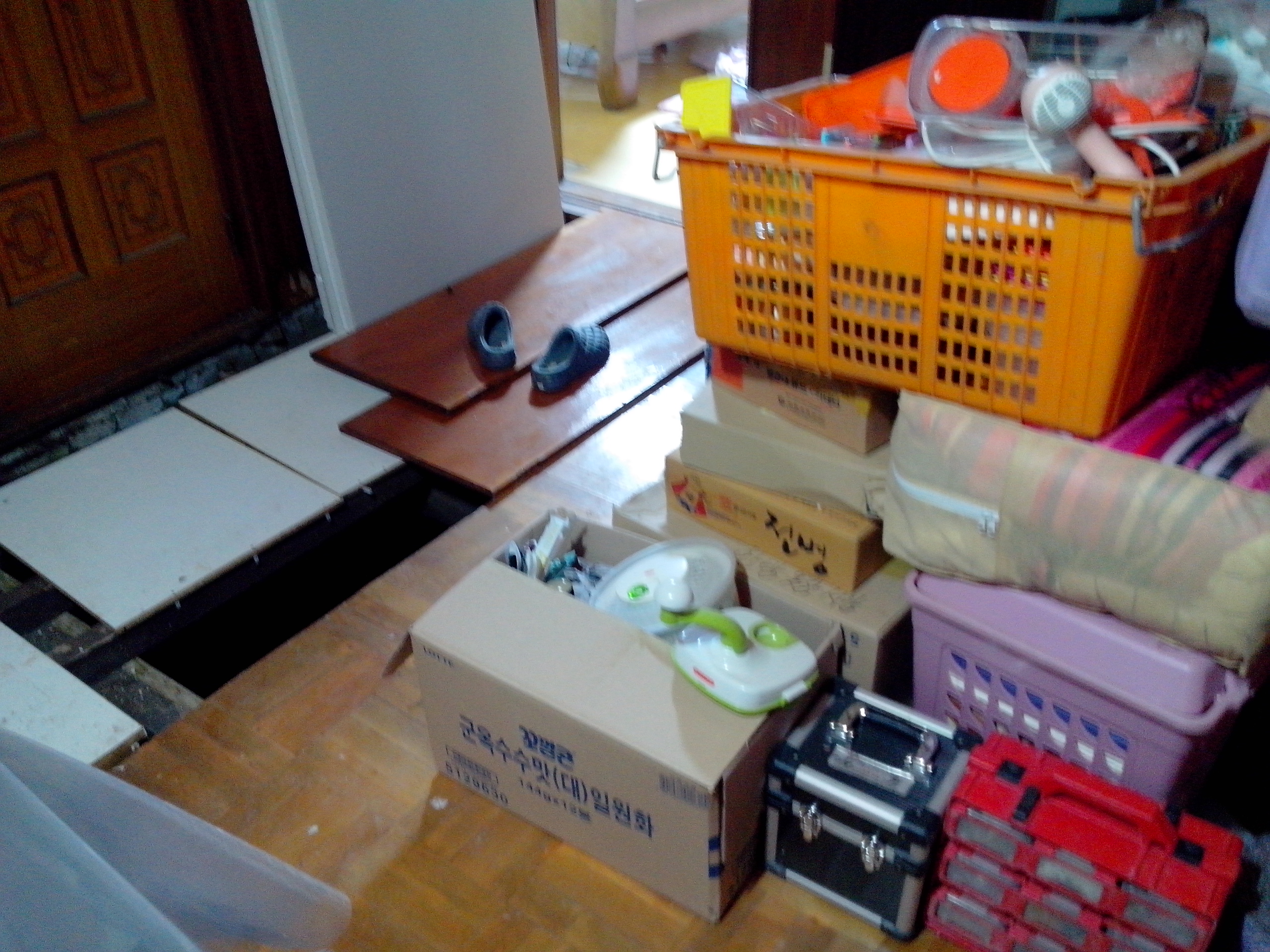 마루의 일부분.. 저 구녕이 썩어서 뚫린 곳임..