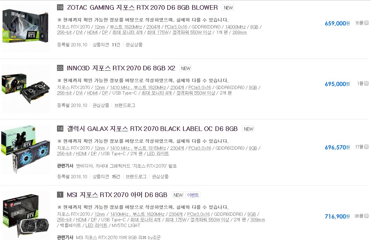 따라서 추측해보면... GTX2060이 나오던..  RTX2070이 60만원 초반으로 떨어지건..