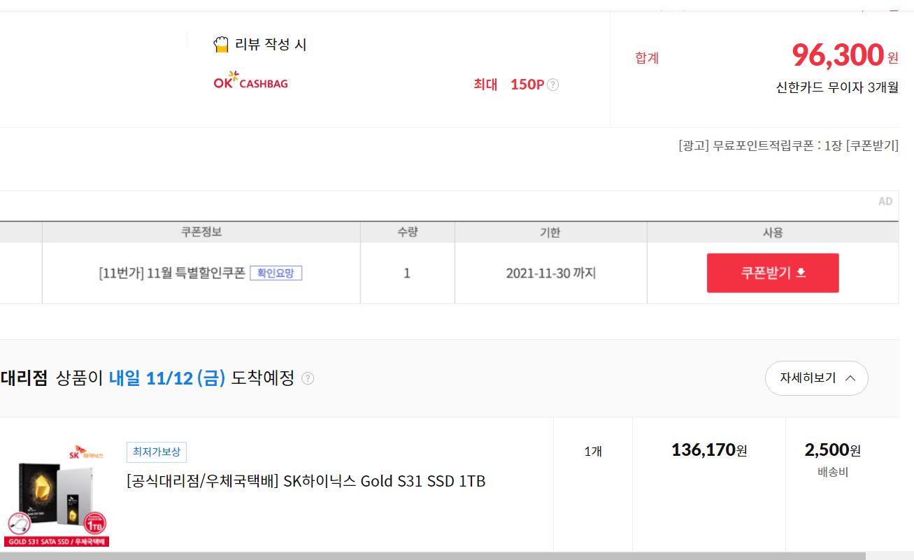 위에도 썼지만 마이크론 1t 짜리가 8.6만이길레 클릭해서 들어가 보면 10.6만인가 그럼..  배송비 뺀가걱이고.. 따로 배송비는 안써이는걱 같던.. 그리고 열한번가 아마존 직구는 열한번가 제공하는 쿠폰도 없는듯 하던..