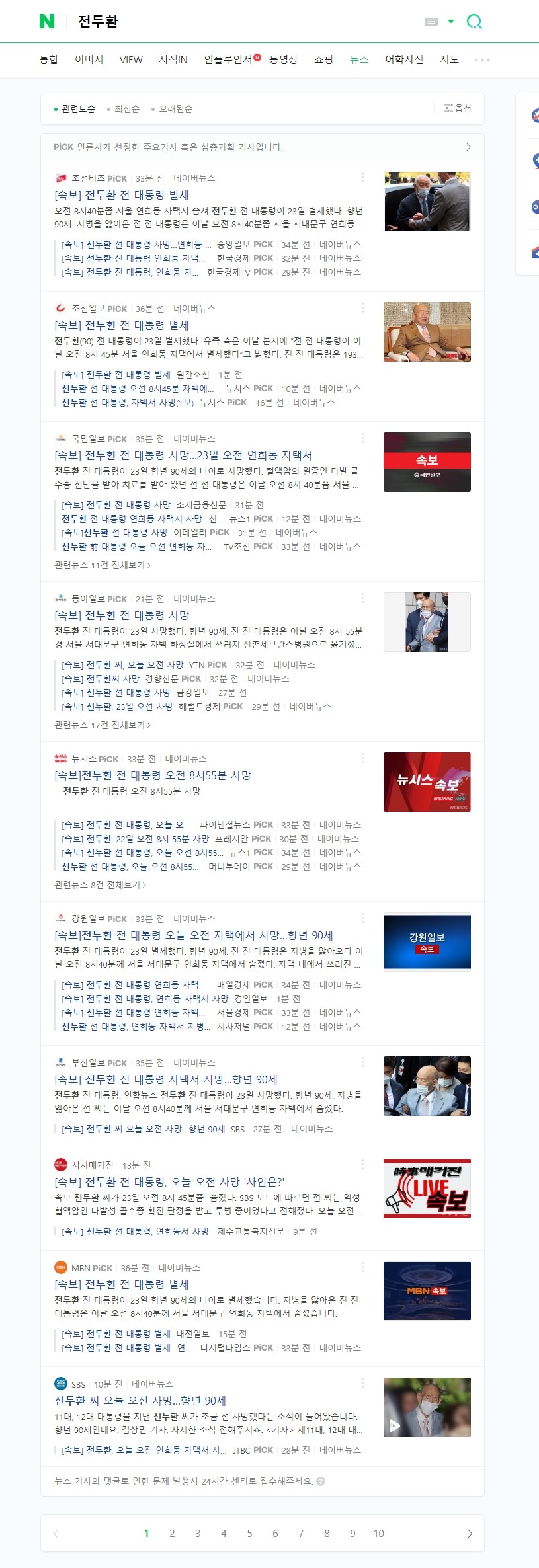 훗....기사 제목하고는... 97 HIKARU 담소 1 2201 0 2021.11.23 10:26 전두환씨. 사망......에 대한 기사들....나는 빨간색이다. 파란색이다...를 너무 적나라하게 드러내는 것 같네요.씨방새가 웬일로....제목을 저렇게 뽑았지...별세 (別世)윗사람이 세상을 떠남.범죄자....추징금 미납부....말도 안되는 사면 받고 나와서 보여준 행태....국민장 이야기 나올거야..분명....ㅋ ㅋ);;; 0 Author 4 3 Lv.97 97 HIKARU 최고관리자 640,305 (88.1%) 등록된 서명이 없습니다.