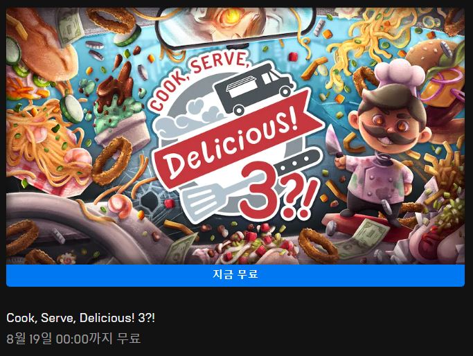 이번주 에픽 무료게임 : Cook, Serve, Delicious! 3?! M Max 정보 3 1636 0 2022.08.12 11:57 https://store.epicgames.com/ko/p/cook-serve-delicious-3-fb9aae 0 Author 3 3 Lv.99 M Max 노땅클럽 970,575 (100%) 시간 참 빠르다~! ㅡ..ㅡy~!!