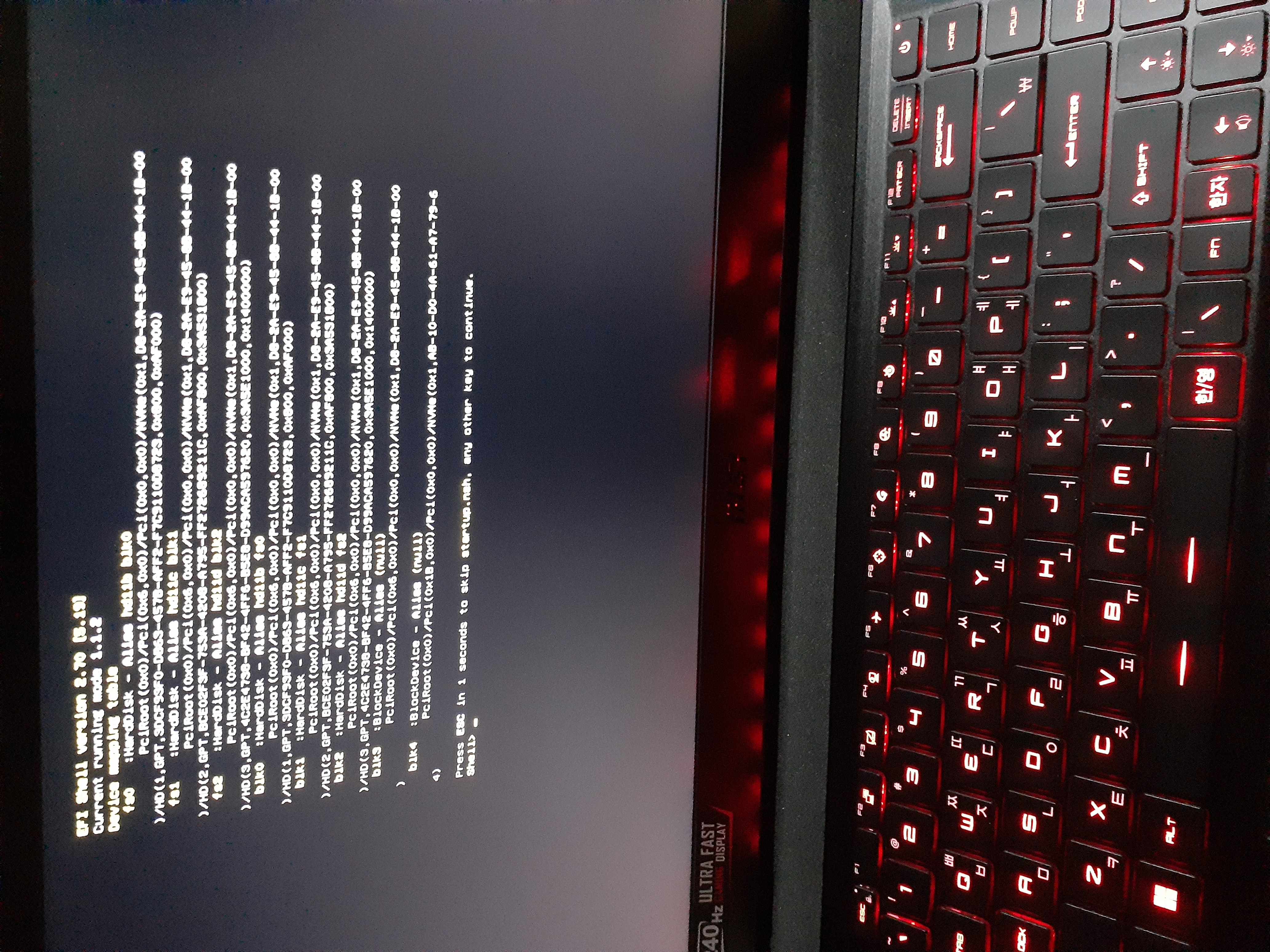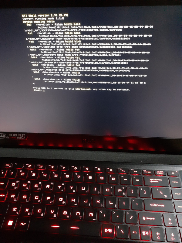 인터넷에 Efi shell version 2.70 오류로 검색해 보니.. 아래 회면에 무슨 명령어를 이걸 쳐라, 저걸처라~