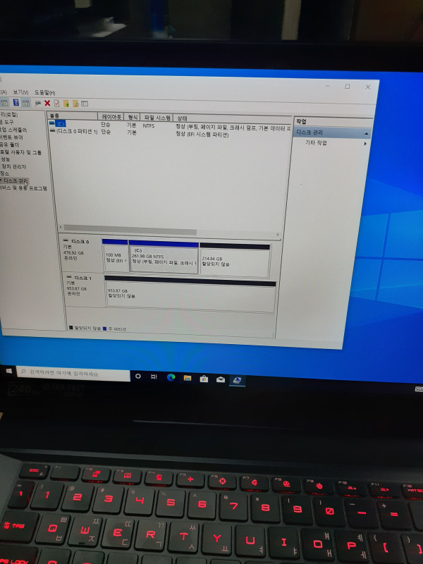 지저분하게 나뉘어진 시스템 파티션 삭제..(아 이걸 사진 찍었어야 했는데.. 당황해서 찍을 생각을 못함..