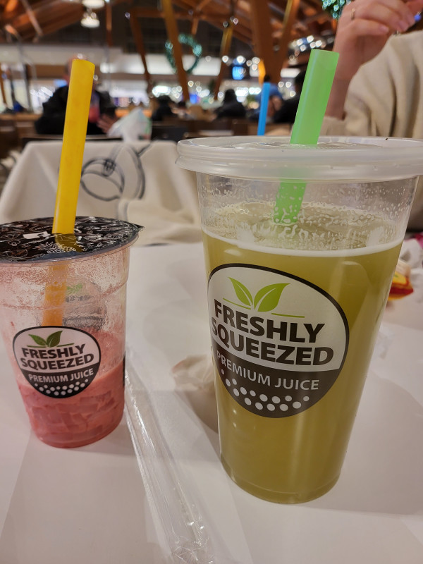 그러고 몰에서 하루종일 놀다가 애가 목이 말라서 푸드코트에 과일쥬스 파는데서 와이프랑 애 마실꺼 사주고 있는데...