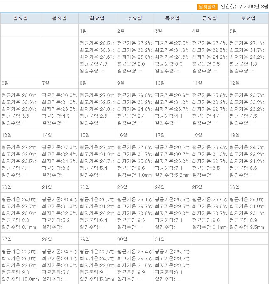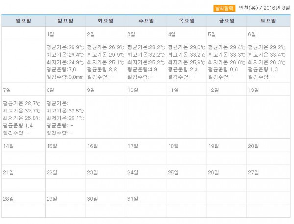 10년전과 지금... M Max 담소 2 7052 0 2016.08.08 14:32 10년전 인천 8월 온도.. 아침기온 대부분 24도 아래로 열대야 별로 없음....(이때는 진짜 살기 좋았음 ㅡ..ㅡ..) 10년후 하루 빼고 계속 열대야.... 이렇게 변한건 대략 5년 전쯤부터...그래도 올해만큼은 아니지만.. 0 Author 3 3 Lv.99 M Max 노땅클럽 968,705 (100%) 시간 참 빠르다~! ㅡ..ㅡy~!!