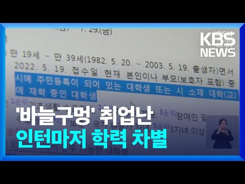 아침에 뉴스보니, 지자체에서 방학때 실시하는 알바 지원 자격을 대학생으로 한정해,